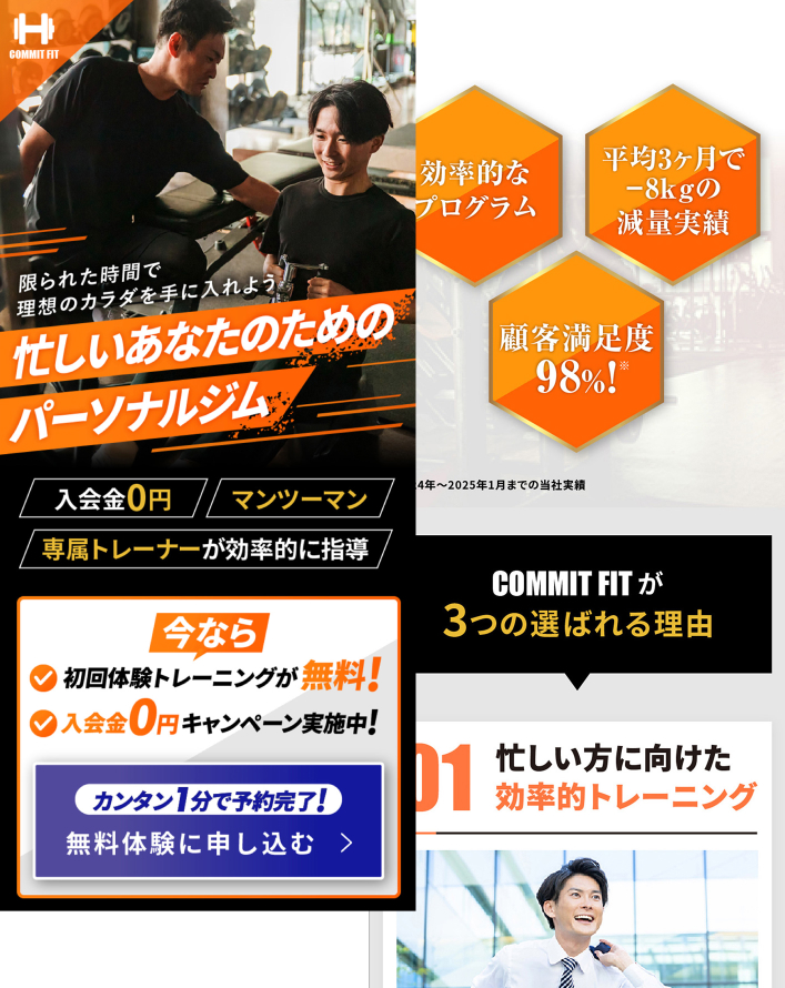 パーソナルジムCOMMIT FIT 新規会員獲得用ランディングページ