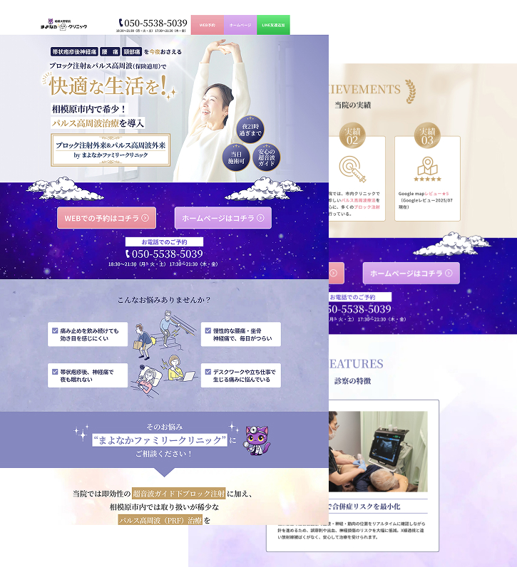 ブロック注射&パルス高周波外来 予約受付用ランディングページ