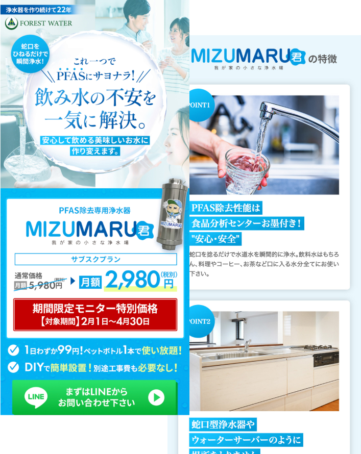 浄水器 新規申し込み・LINE登録用ランディングページ
